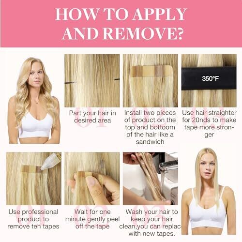 heat the tape portion to improve durability during installation; install on washed and dried hair; avoid washing hair for 48 hours after application; wash with mild shampoo; condition ends to maintain shine; replace tape refills every 4 weeks.