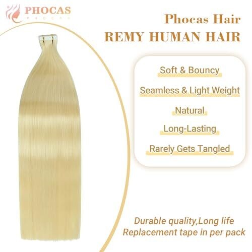 • Phocas Tape In Hair Extensions Platinum Blonde 18In 50G 20pcs Doublesided Tape