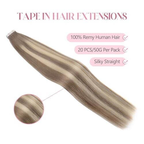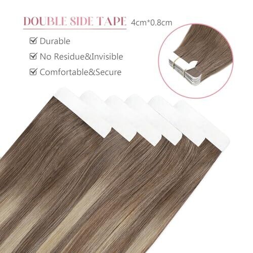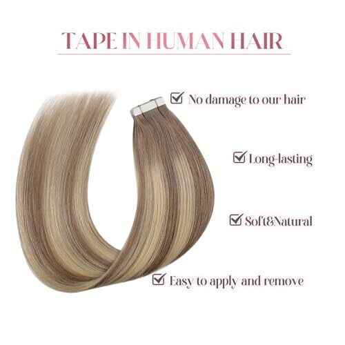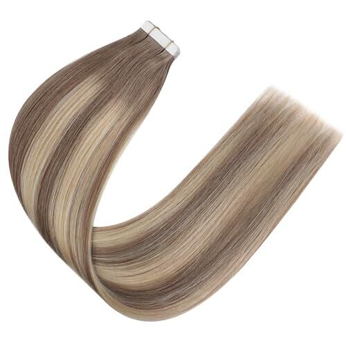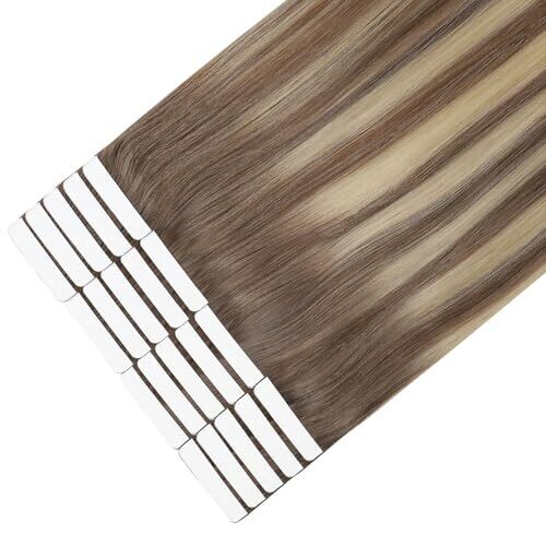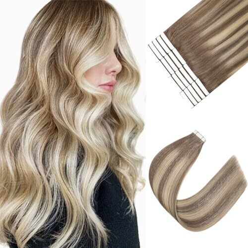 Yunifee Tape In Hair Extensions Ash Brown Highlighted Beached Blonde 20pcs 40cm Remy Hair