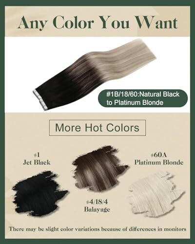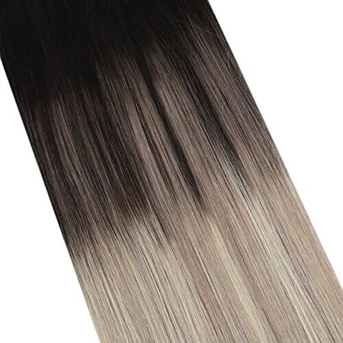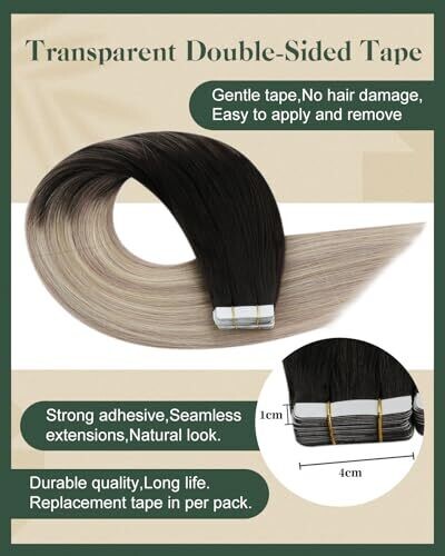 Premium real human hair extensions deliver soft, natural movement and salon-quality results. Invisible double-sided tape provides a seamless look and secure hold for long wear. Includes 20 pieces to add highlights or transform your style in Natural Black Ombre Platinum Blonde.