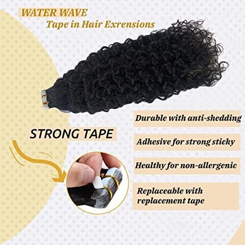 • Water Wave Tape-In Extension for Black Women Brazilian Remy 16In #Natural Black