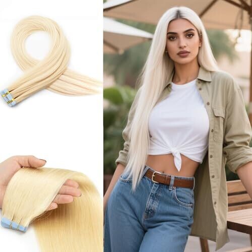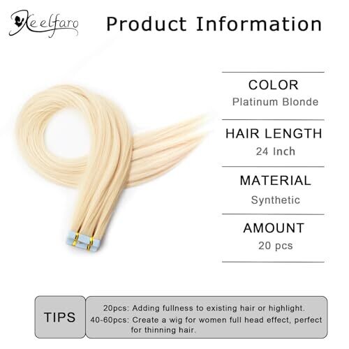 Experience natural-looking length with Xeelfaro platinum blonde tape-in hair extensions. Each 24-inch straight weft provides seamless blending and comfortable wear. Includes 20 pieces for full coverage, easy application, and secure stay throughout the day.