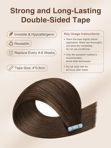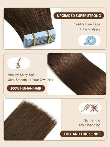 • Yilite Tape In Extensions 16 Inch 20pcs 40G Silky Skin Weft Remy #4 Medium Brown