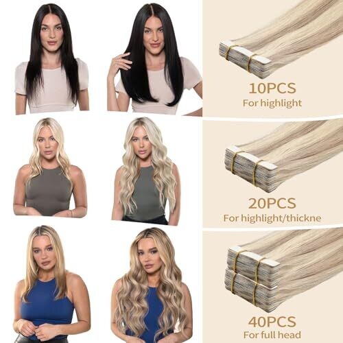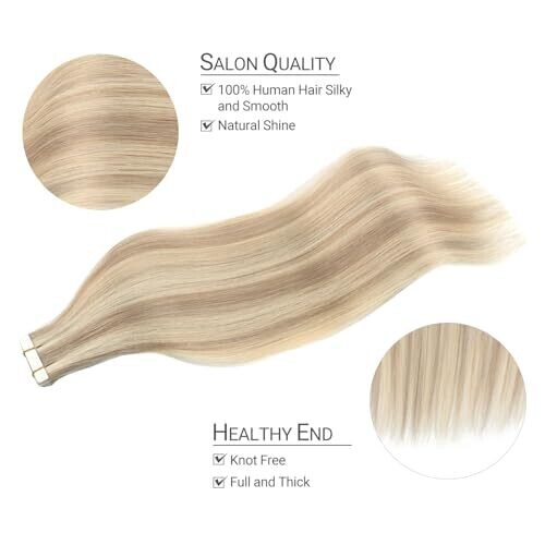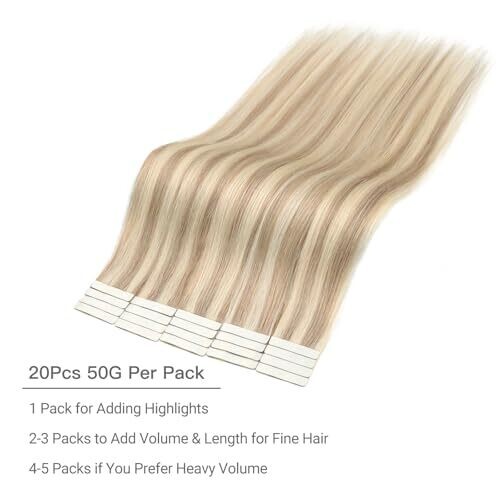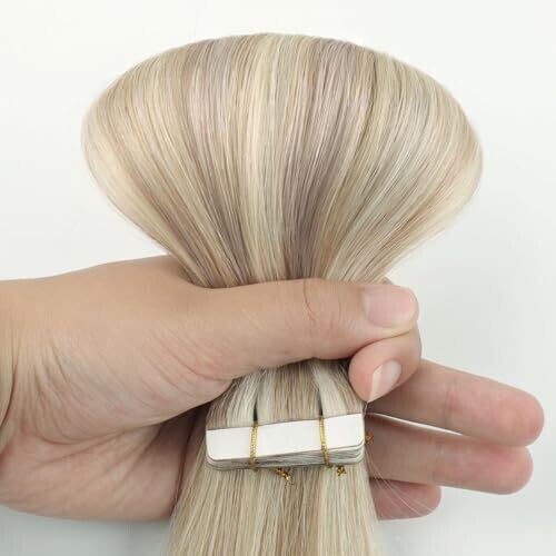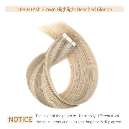• Yunifee Tape In Hair Extensions Ash Brown Highlighted Beached Blonde 20pcs 40cm Remy Hair