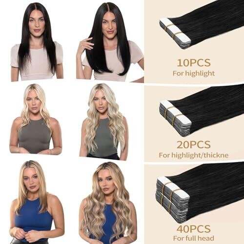 Lightweight, seamless tape-in extensions blend with your natural hair for a flawless look. Real human hair offers silky softness and versatile styling from straight to curled. Comfortable, discreet wear with easy application and removal and long-lasting hold.
