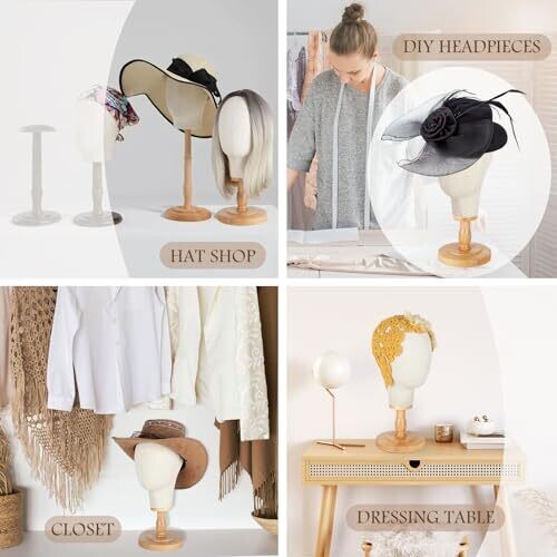 Realistic display for hats, headpieces, helmets, bridal veils, wedding headpieces, glasses and headbands. Neutral canvas head ensures inclusive, distraction-free presentation. 21-inch sizing matches adults. Sturdy wooden base, easy to assemble and portable for events or boutiques.
