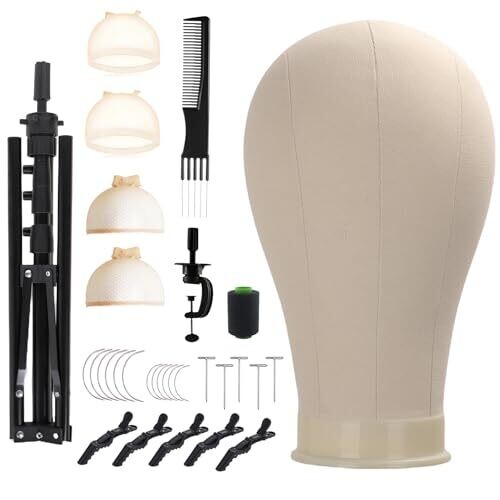 - DaizySight's Wig Stand & 22" Mannequin Head Kit provides a premium, canvas-wrapped wig head for secure pinning and styling with ease.