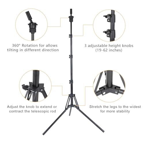 - Upgrade your toolkit with a 62-inch tall tripod that adjusts from 19" to 62" for versatile styling, trimming, and display while seated or standing.