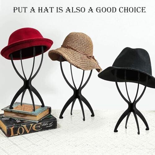 • Triple-Pack Wig Stands, Hat Display Stand, Plastic Folding Wig Holder, Portable Wig Head Stands 13.8 Inches (Black)