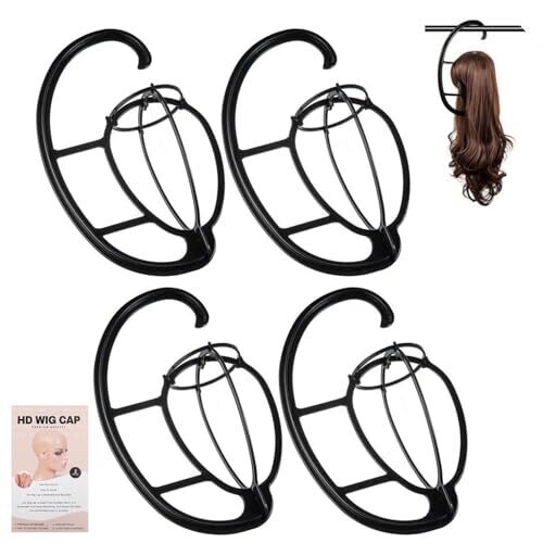 • Wanxinpt Hanging Wig Stand, 4 Sets (BLACK), Wig Drying Stand
