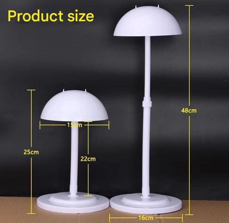 • Versatile solution for displaying, drying, or styling wigs and hats, compatible with a wide range of headgear.